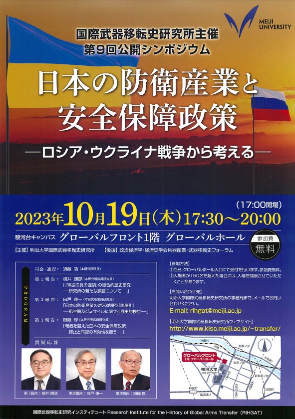明治大学国際武器移転史研究所主催 第9回公開シンポジウム日本の防衛産業と安全保障政策-ロシア・ウクライナ戦争から考える-