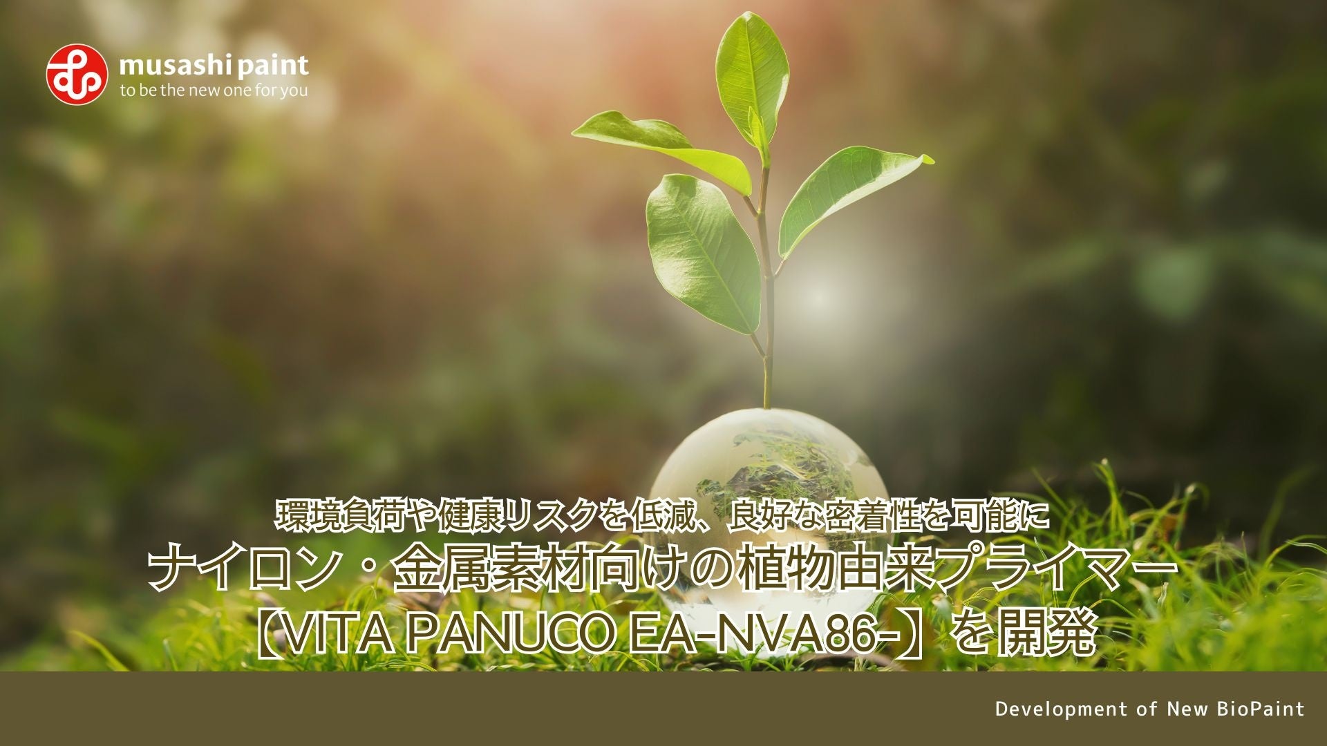 VITA PANUCO EA-NVA86-は、ナイロン・金属素材向けの新しいプライマーです。植物由来原料を使用し、従来の石油原料由来のプライマーと比べ、環境負荷や人体への健康リスクをより低減出来ます。