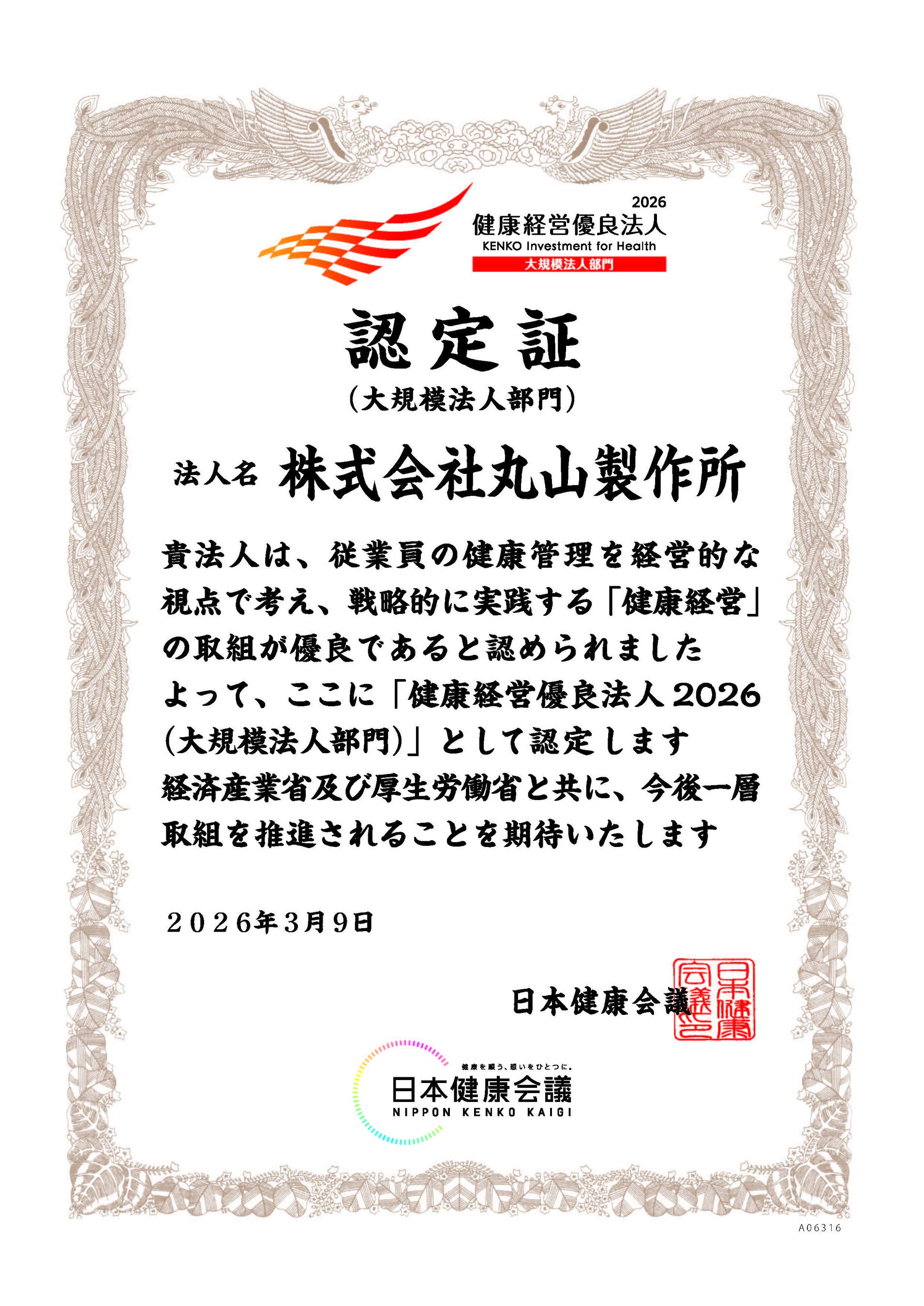 株式会社丸山製作所(本社:東京都千代田区、代表取締役社長:内山剛治)および当社グループ会社である日本クライス株式会社、マルヤマエクセル株式会社、西部丸山株式会社、丸山物流株式会社は、経済産業省と日本健康会議による健康経営優良法人認定制度において、5年連続で「健康経営優良法人(大規模法人部門)」に認定されました。
