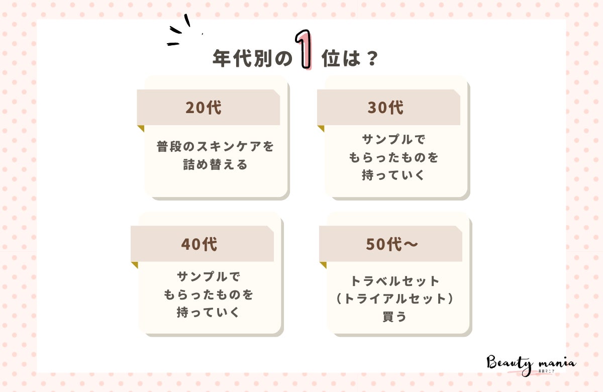 <調査レポート>旅行や帰省のスキンケアにトラベルセット(トライアルセット)は買いますか?1位は「サンプルを持っていく」
