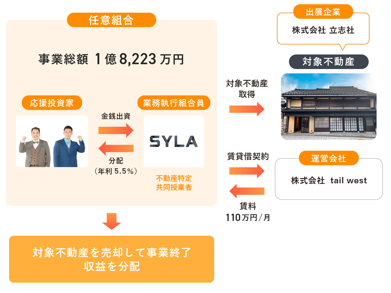 “応援を新しいカタチで”をコンセプトに、一口1万円から、社会貢献や地域創生、誰かの夢や挑戦に繋がる不動産に応援投資ができる“応援型不動産クラウドファンディングプラットフォーム”です。