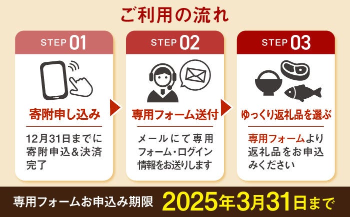 ・返礼品の申込期限は【2025年3月31日まで】です。かならず期間内に専用フォームより返礼品をお申込み完了くださいませ。