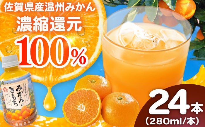 【果汁100%】持ち運びに便利な蓋付きボトル!みかんのきもち 280ml×24本
