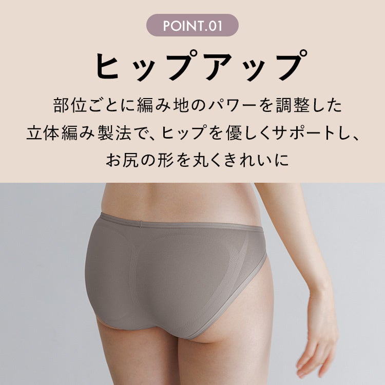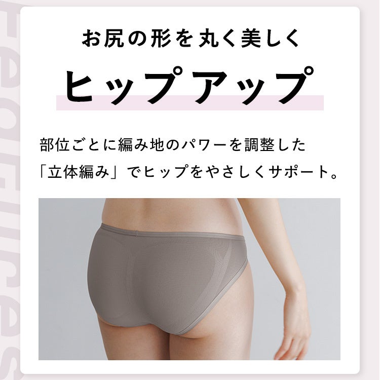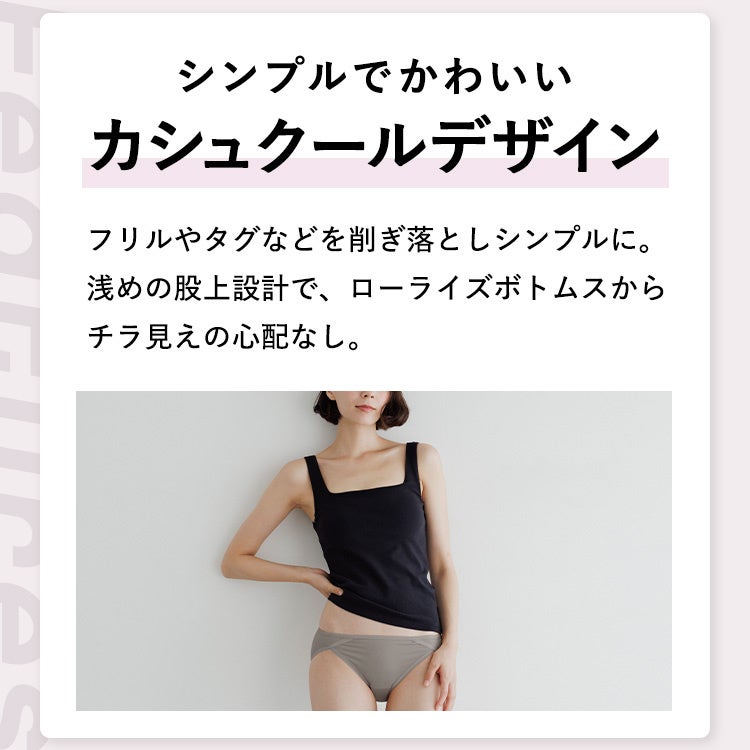 デザイン面では、見た目のスタイリッシュさと普段使いしやすい実用性を両立。フリルやタグといった装飾が無いのでストレスフリー、軽やかでシンプルなデザインにより、下着のラインが響きにくい機能性も備えています。