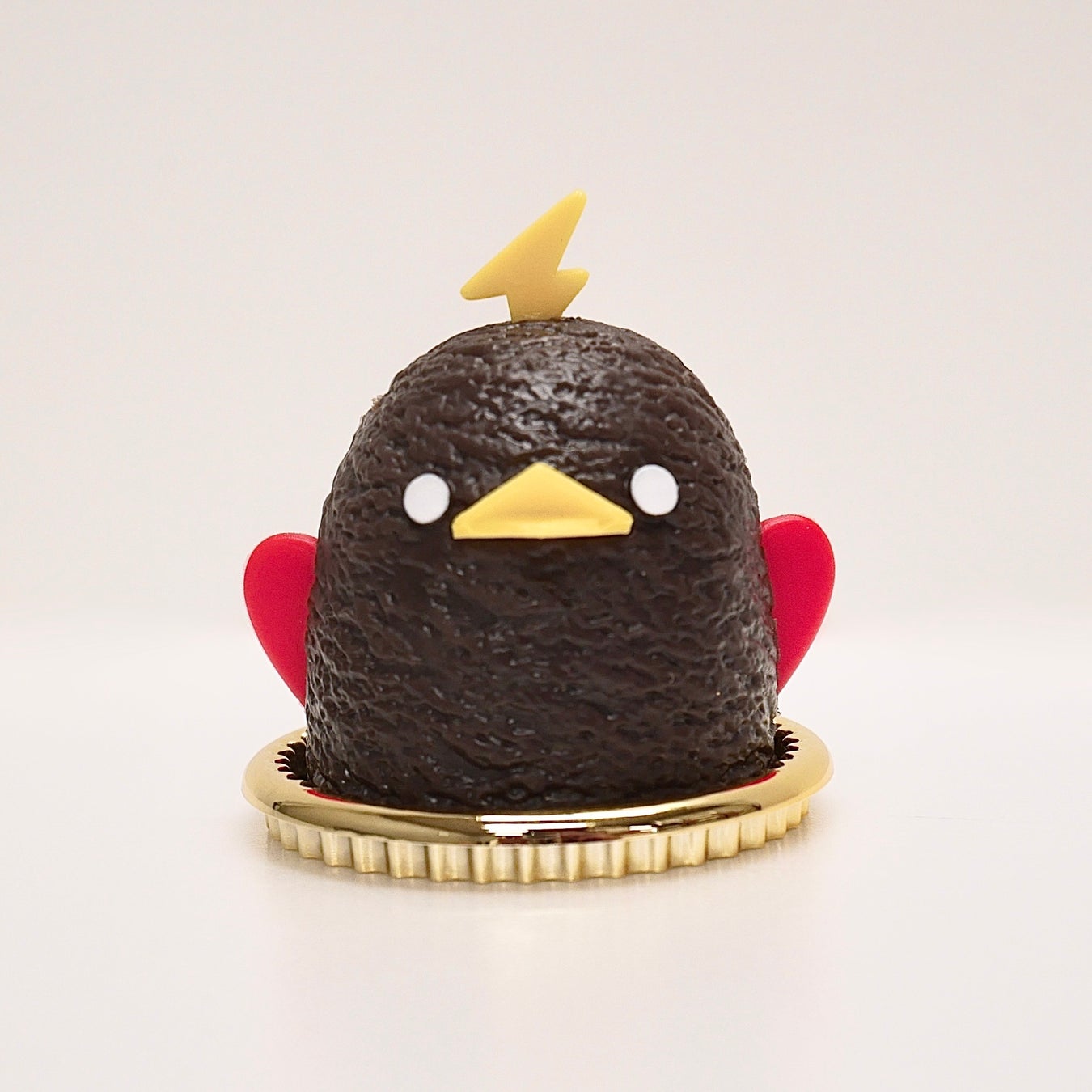 ブラックなボディとイナズマ型のトサカ、赤色の羽で「ブラックサンダー」を表現しています。