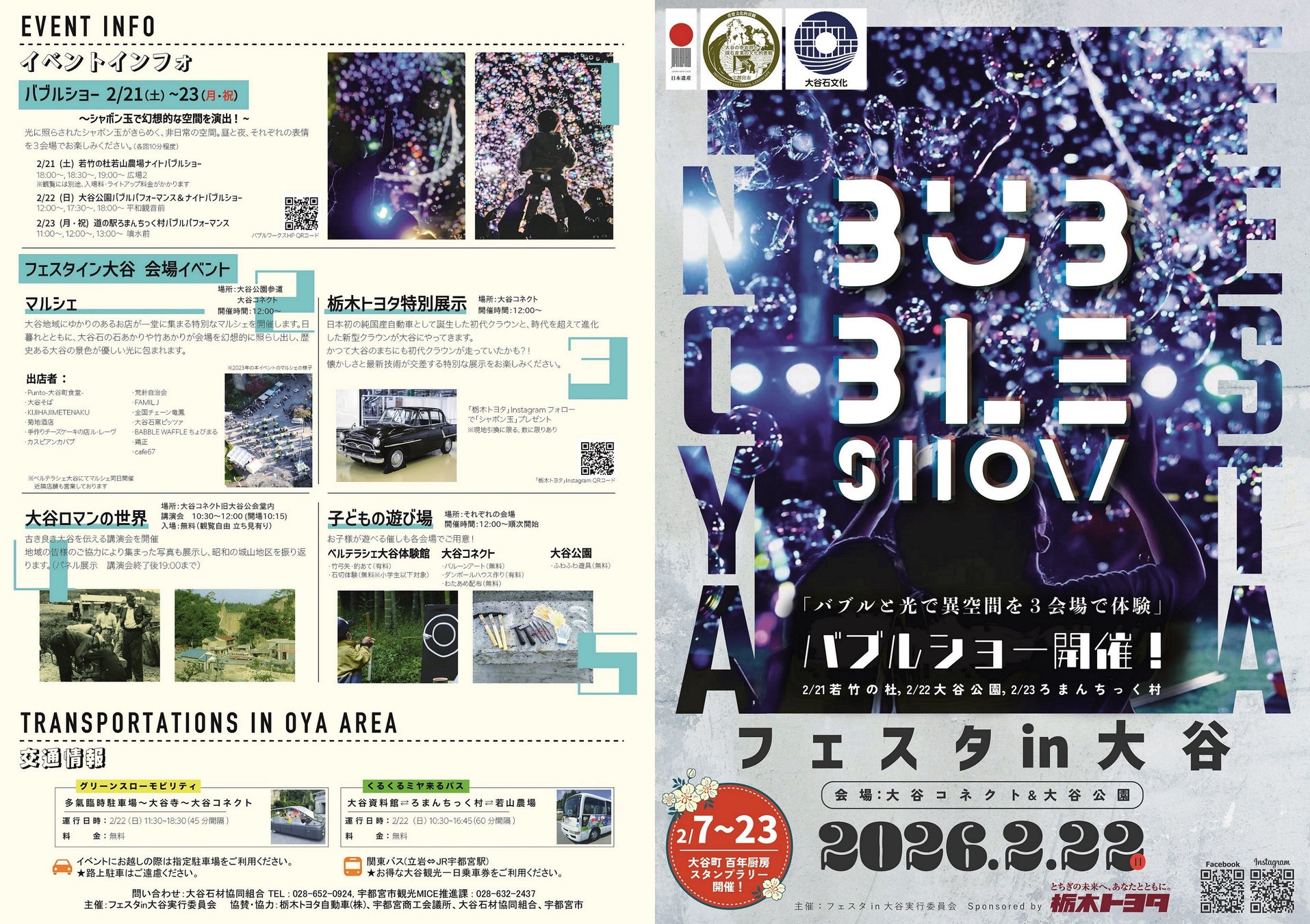 【栃木県宇都宮市】「フェスタin大谷」開催/石の里大谷で宇都宮市初のバブルショー
