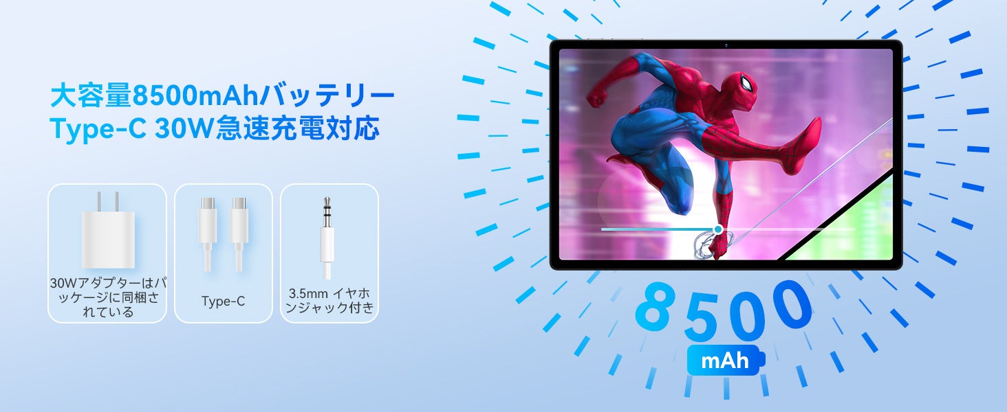 Hpad5は、最大8500mAhの高容量バッテリーを備えており、十分なパワーを提供します。実際のテストでは、1080Pのビデオを連続再生することができ、最大12時間の使用が可能であり、バッテリー切れの心配なく日常の仕事やエンターテイメントを楽しむことができます。Type-C 30Wの高速充電とOTGをサポートしており、素早くバッテリーを充電することができます。バッテリーのサイクル数が高く、一般のバッテリーよりも劣化に対して耐性があり、安全性も優れています。