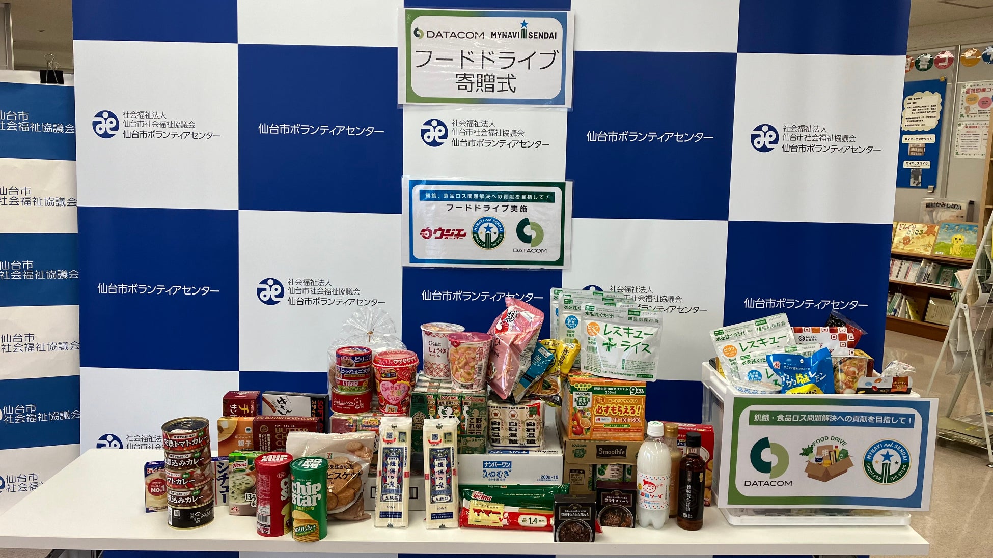 小売業界に特化した商品・顧客分析ソリューションを始めとする、パッケージシステムを開発・提供しているデータコム株式会社(本社:宮城県仙台市、代表取締役:小野寺修一)は2024年4月11日(木)~4月19日(金)と4月21日(日)にWEリーグ所属のマイナビ仙台レディース及び、宮城県に店舗を展開する株式会社ウジエスーパーとフードドライブを実施し、回収した食品を仙台市社会福祉協議会へ寄贈いたしました。