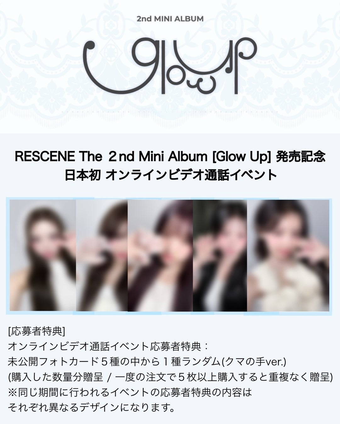 RESCENE The 2nd Mini Album [Glow Up] 発売記念 日本初 オンラインビデオ通話イベント 開催決定!