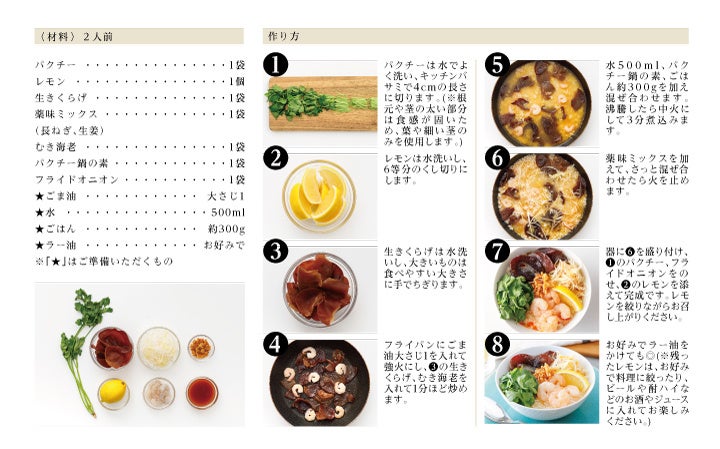 1.ポルトガル風海の幸のトマトリゾーニ 2.パクチー香る海老と生きくらげのエスニック雑炊 |