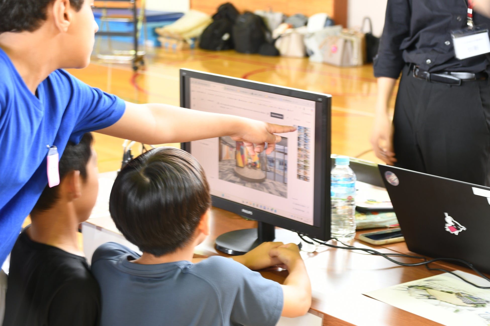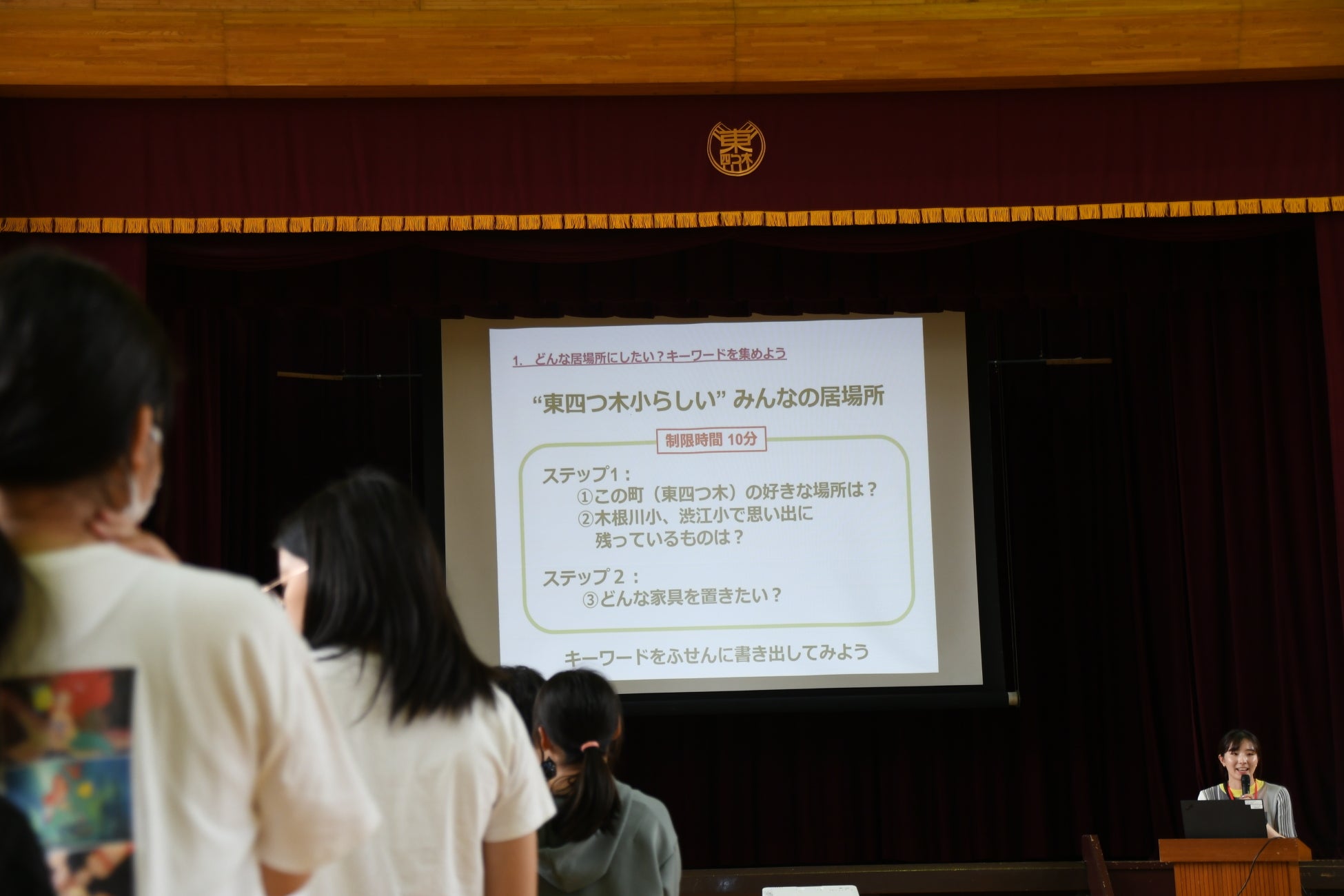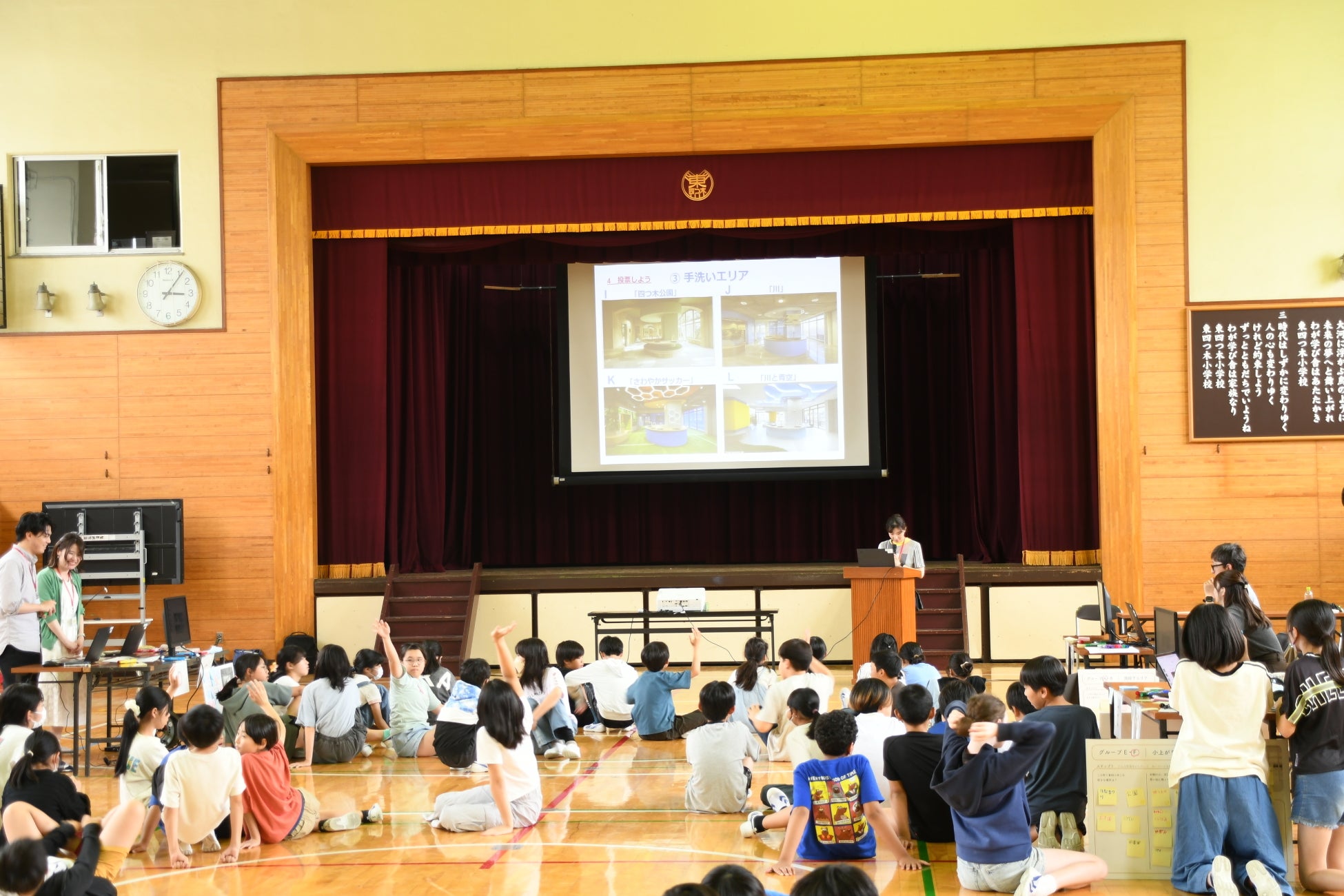 6月12日(木)東四つ木小学校体育館にて、新校舎の設計に活かすため、生成AIを使用したワークショップが行われました。