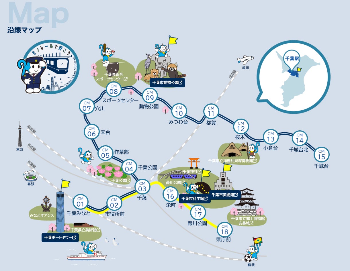 この「空中さんぽマップ」を通じて、沿線にお住まいの方や千葉市を訪れるみなさまに千葉都市モノレールそしてその沿線の魅力を感じていただくとともに、地域のさらなるにぎわいづくりに繋がれば幸いです。