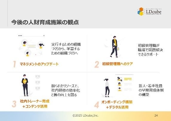 ・ポストコロナの人財育成の実態調査:https://ldcube.jp/downloadlist/downloadpostcorona2024