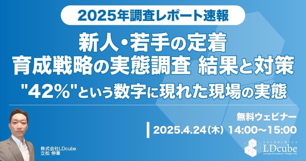 LDcube、「【2025年調査レポート速報】『新人・若手の定着~育成戦略の実態調査』結果と対策~"42%"という数字に現れた現場の実態」ウェビナーを開催(4月24日14:00~15:00)