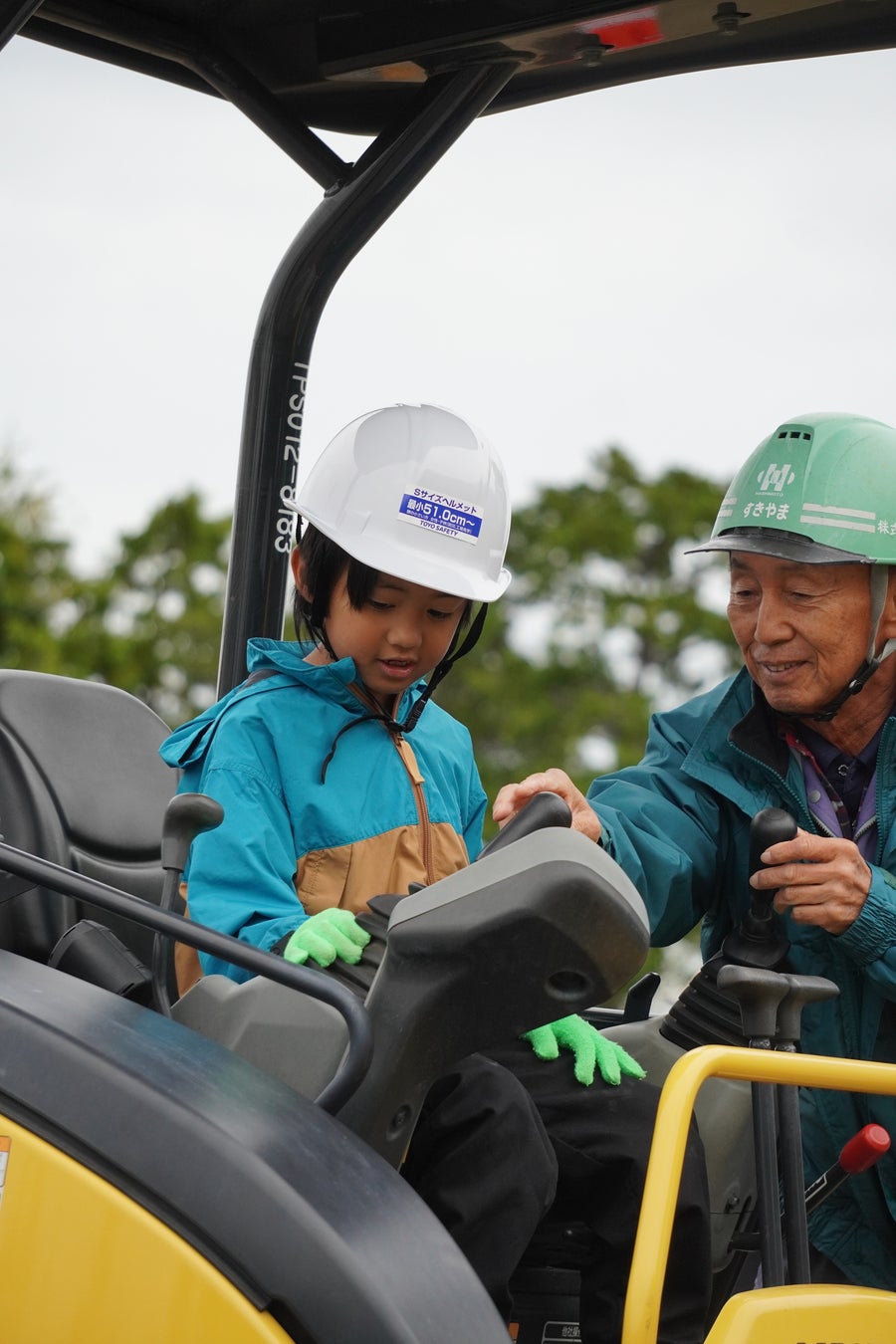 現場の社員が、機械の仕組みや安全の大切さをわかりやすく説明し、建設業が“まちの安心・安全を支える仕事”であることを伝えました。