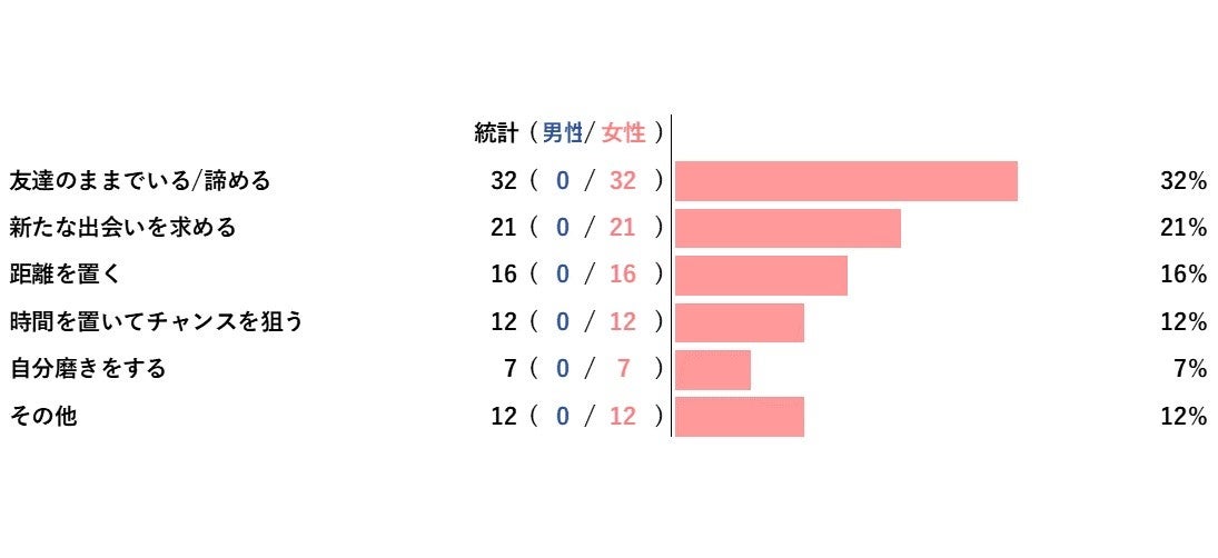 「『付き合えないけど友達でいたい』と言われた時どうしますか?」とアンケート調査をした結果、1位は『友達のままでいる/諦める』でした。