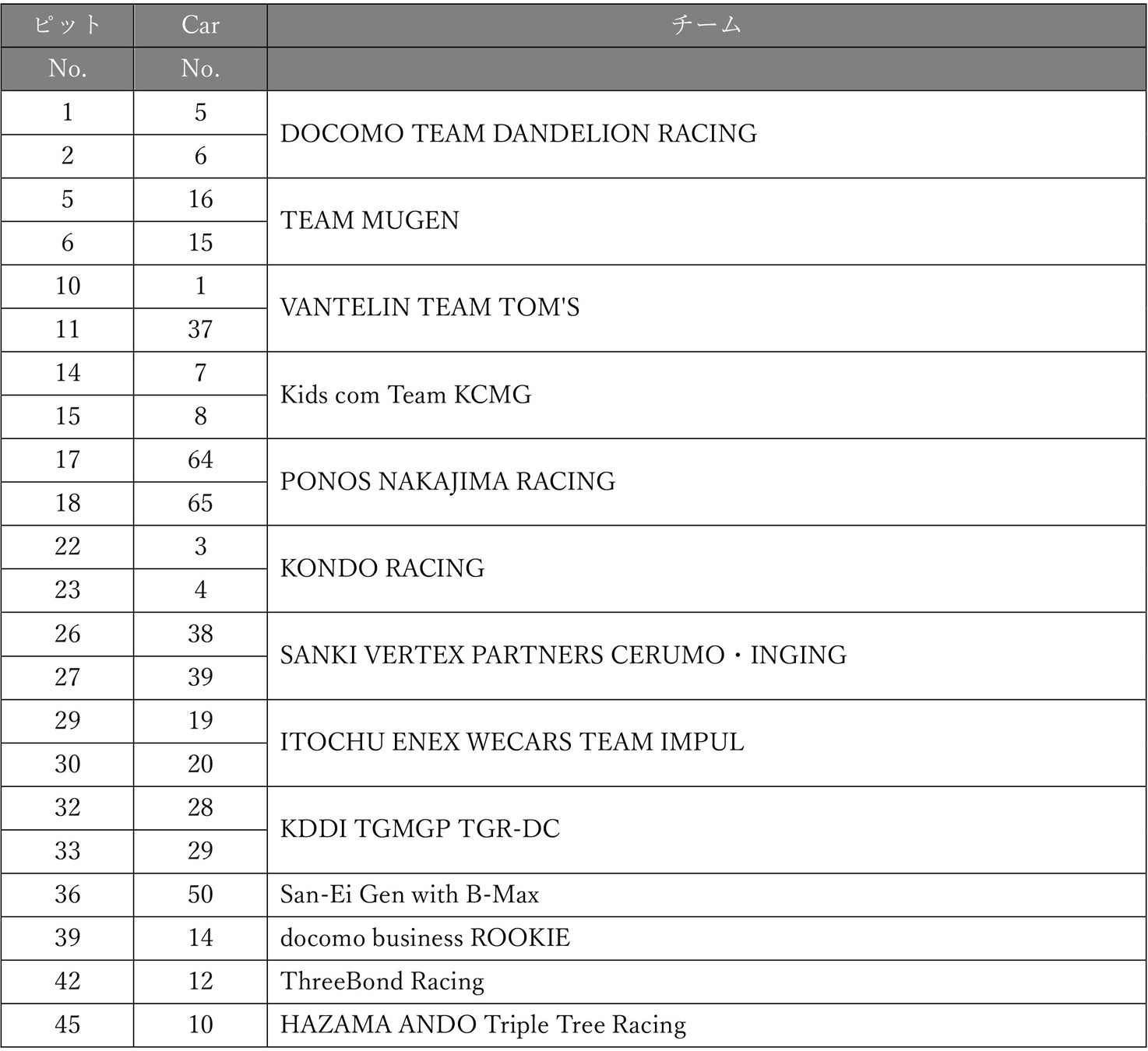 2025 SUPER FORMULA Rd.3-4 ピット割り