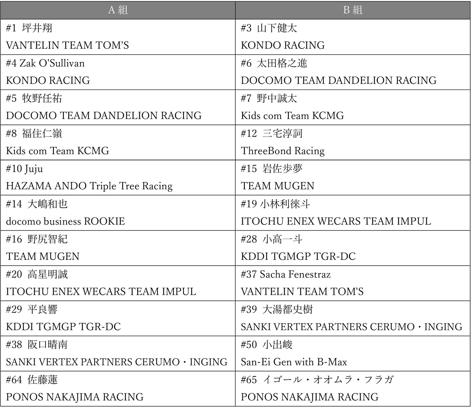 2025 SUPER FORMULA Rd.3 予選Q1 グループ分け
