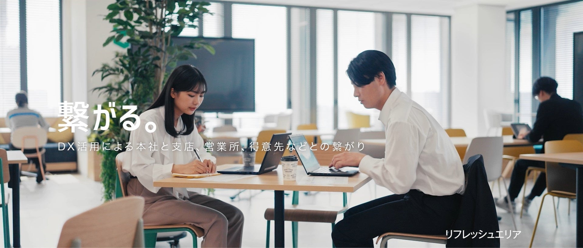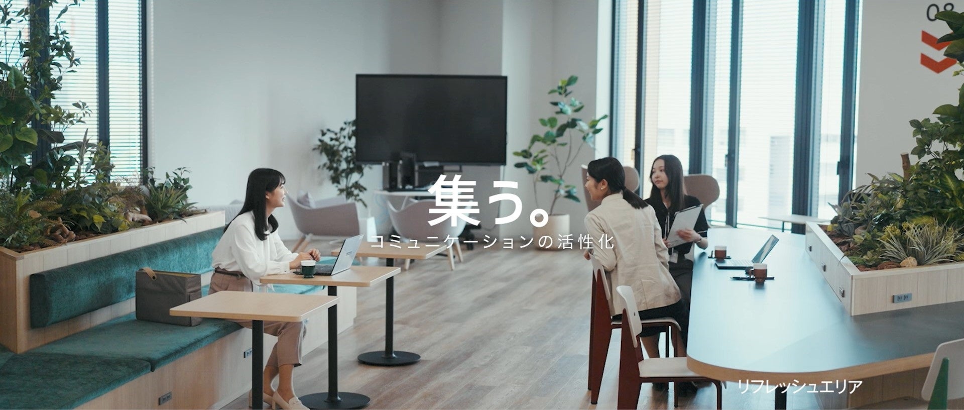 動画では、新本社オフィスで働く男女二人の1日の過ごし方を通して新本社オフィスの概要を紹介するとともに、コンセプトである「集う。繋がる。未来を創る。」をもとに既存の概念に捕らわれずフレキシブルに働く様子を表現しています。また、実際に働く社員のインタビューも織り込みました。