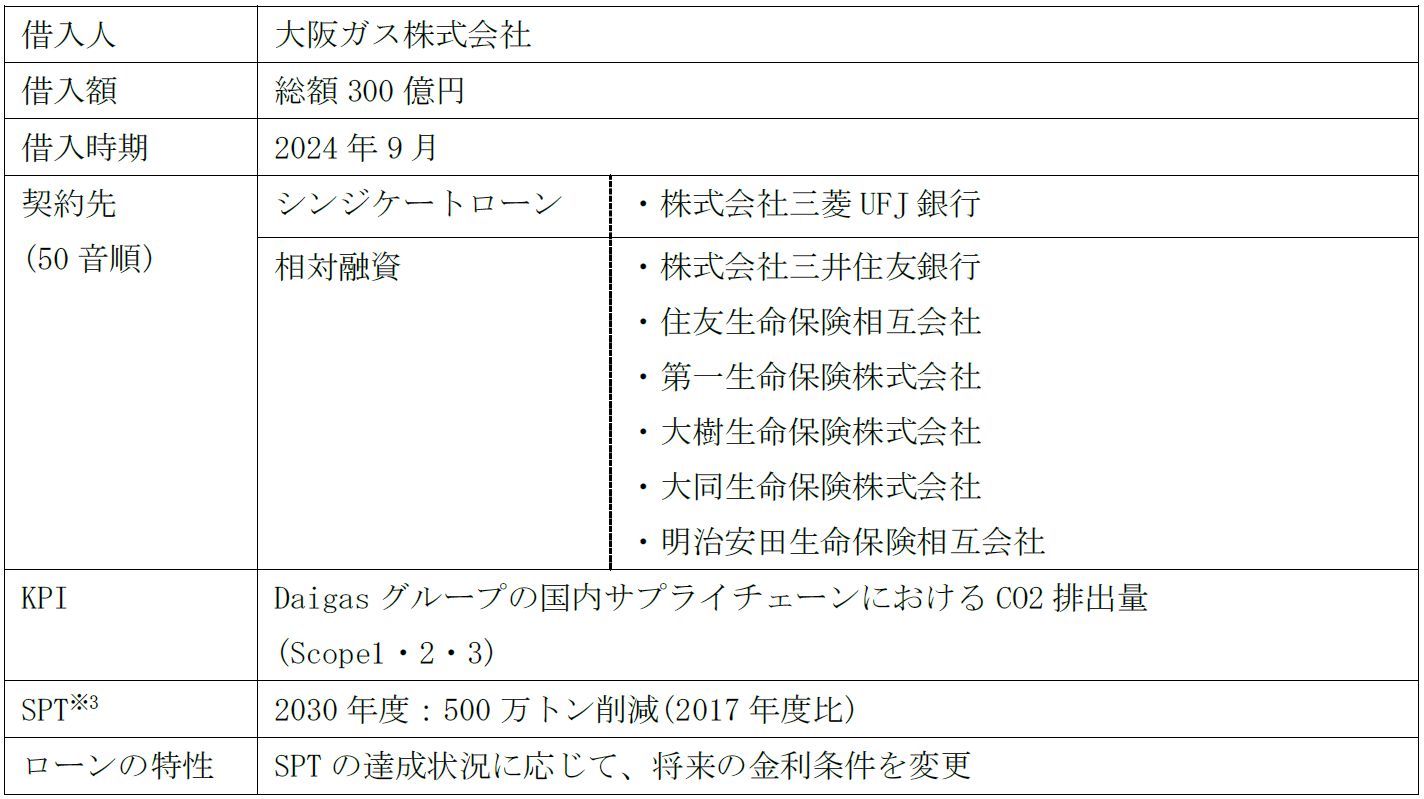 この度、既に策定している「Daigasグループグリーン/トランジション・ファイナンス・フレームワーク」※1に則り、本ローンによる資金調達を行います。公表されている情報から当社で確認する限り、本ローンでの資金調達は都市ガス事業者初となります。
