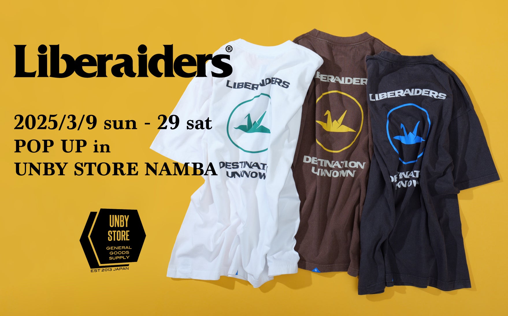 10周年を記念した「UNBY STORE × Liberaiders」別注Tシャツが3/9(日)に発売!同日から新店舗のなんばパークス店にてPOP UPも開催!