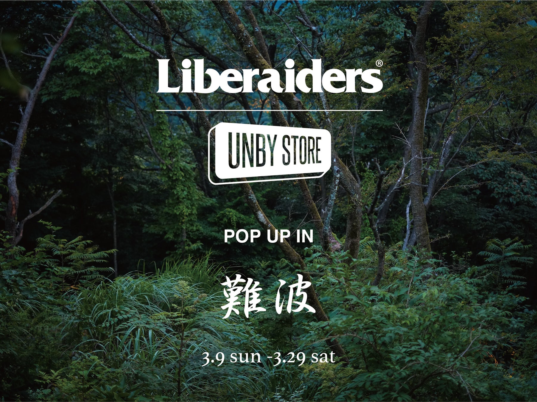 また、3/9(日)にオープンするUNBY なんばパークス店では、オープンと別注アイテムの発売を記念して3/9(日)から3/29(土)の期間、LiberaidersのモアバリエーションPOP UPを展開いたします。