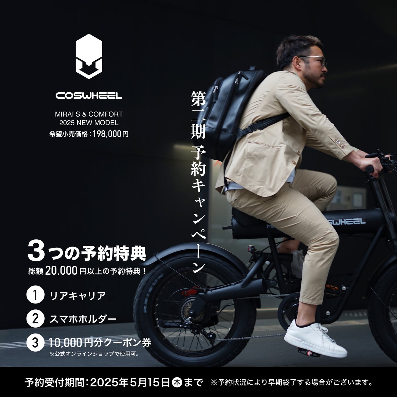 COSWHEEL MIRAI 2025年Newモデルは、2025年1月10日の第一期予約キャンペーンスタート初日から予約販売台数420台以上と好調なスタートを切りました。
