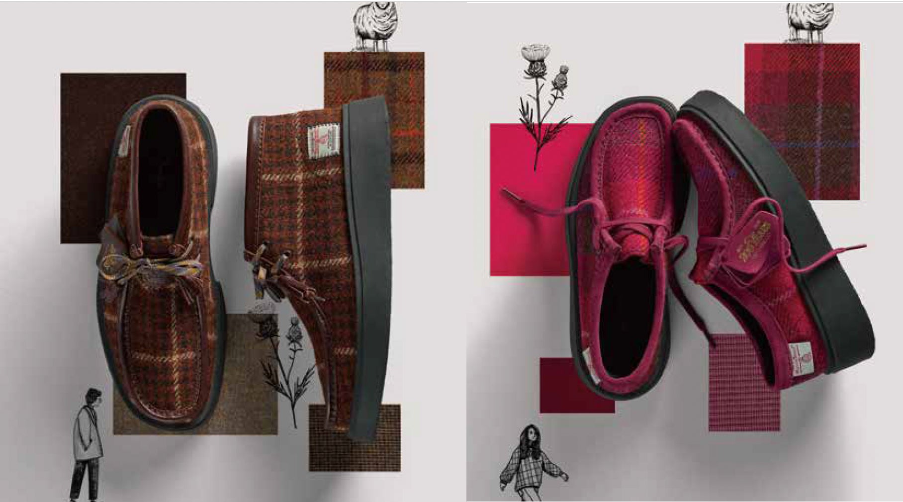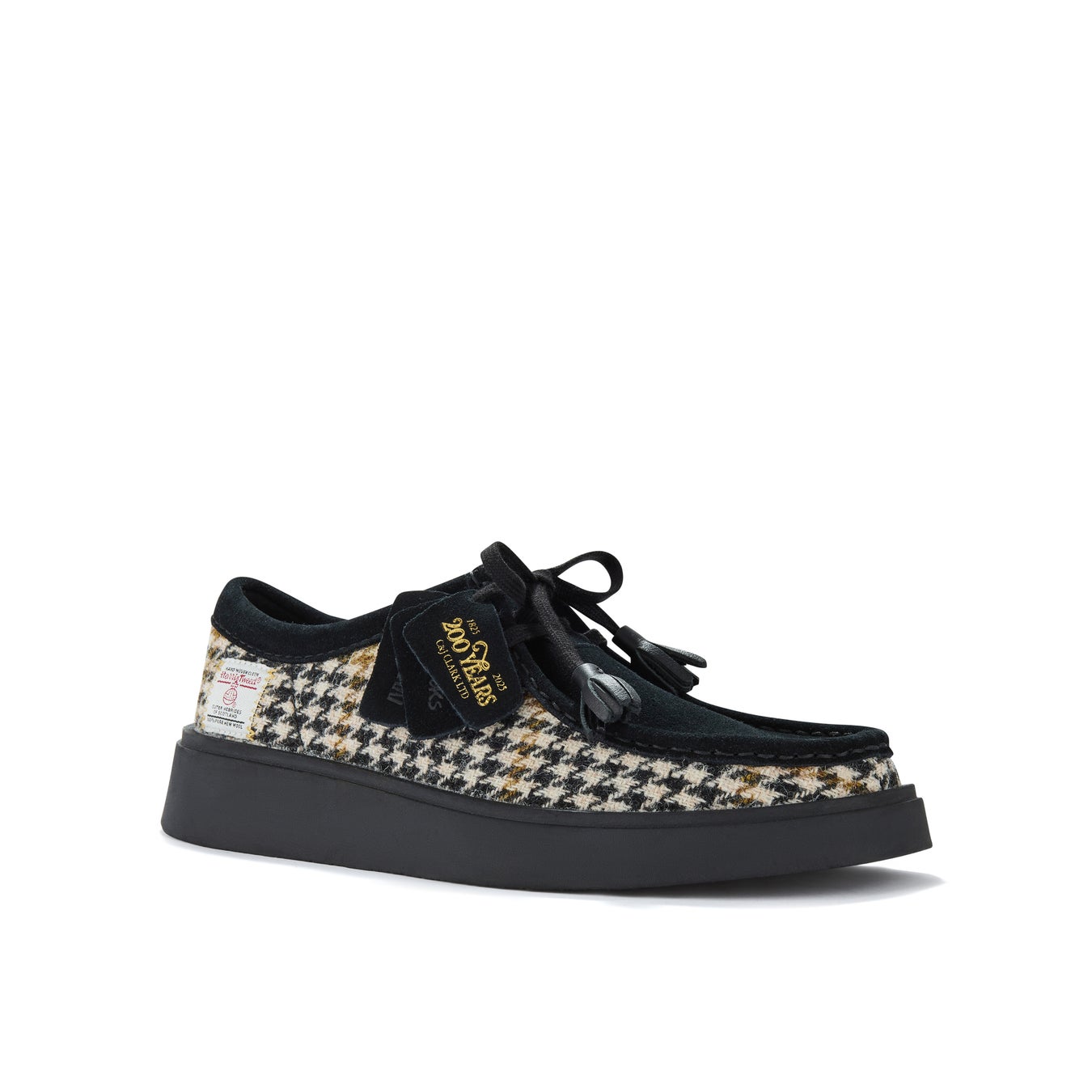 スコットランド発祥の伝統素材「Harris Tweed(ハリスツイード)」を採用したクラークスのTorview(トービュー) が登場。上質なウールの温もりとクラフツマンシップが息づくハウンドトゥース柄をアッパーに採用し、Harris Tweed の織ネームとハンドタグ、そしてクラークスの200 周年を記念した特別なFOB が付属。足元から、秋冬の装いに深みとストーリーを添えます。