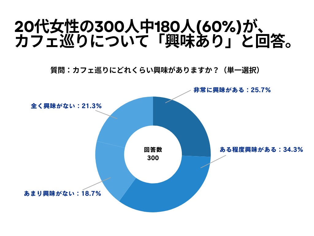 20代女性の300人中180人(60%)が、 カフェ巡りについて「興味あり」と回答【カフェ巡りに関するアンケート】