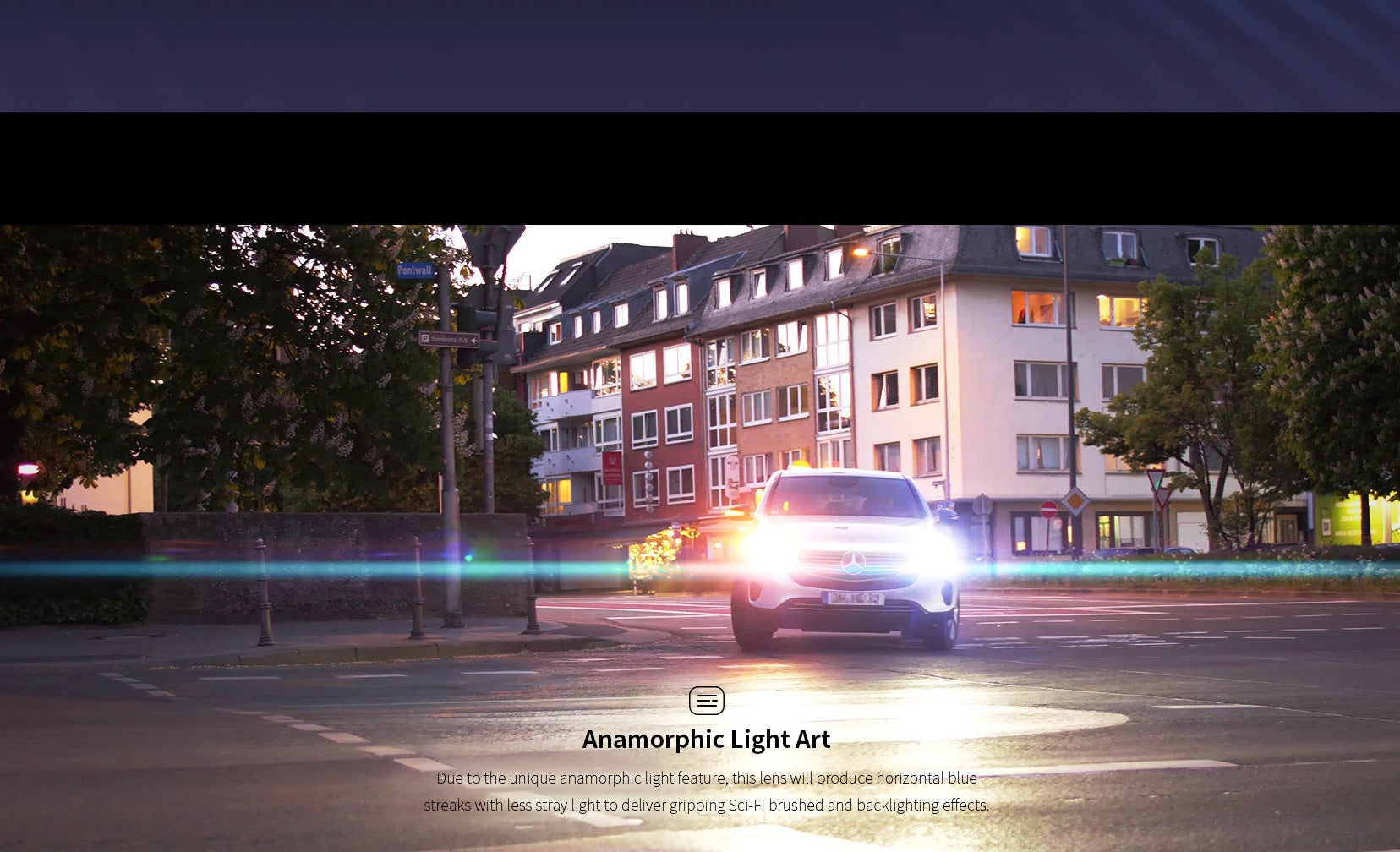 このレンズのユニークなアナモルフィックライティング機能により、横方向に青いフレアが現れ、不要な光の散乱が少なくなります。これにより、引き込まれるようなSF的なブラシ効果や逆光効果を実現します。