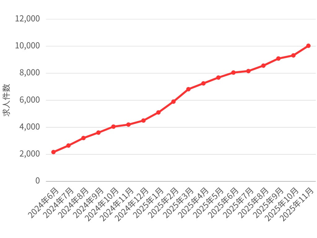 掲載店舗数・求人件数ともに成長を継続し、2025年11月21日に求人掲載数10,000件を達成。契約店舗数も同月、4,000店舗を超えました。