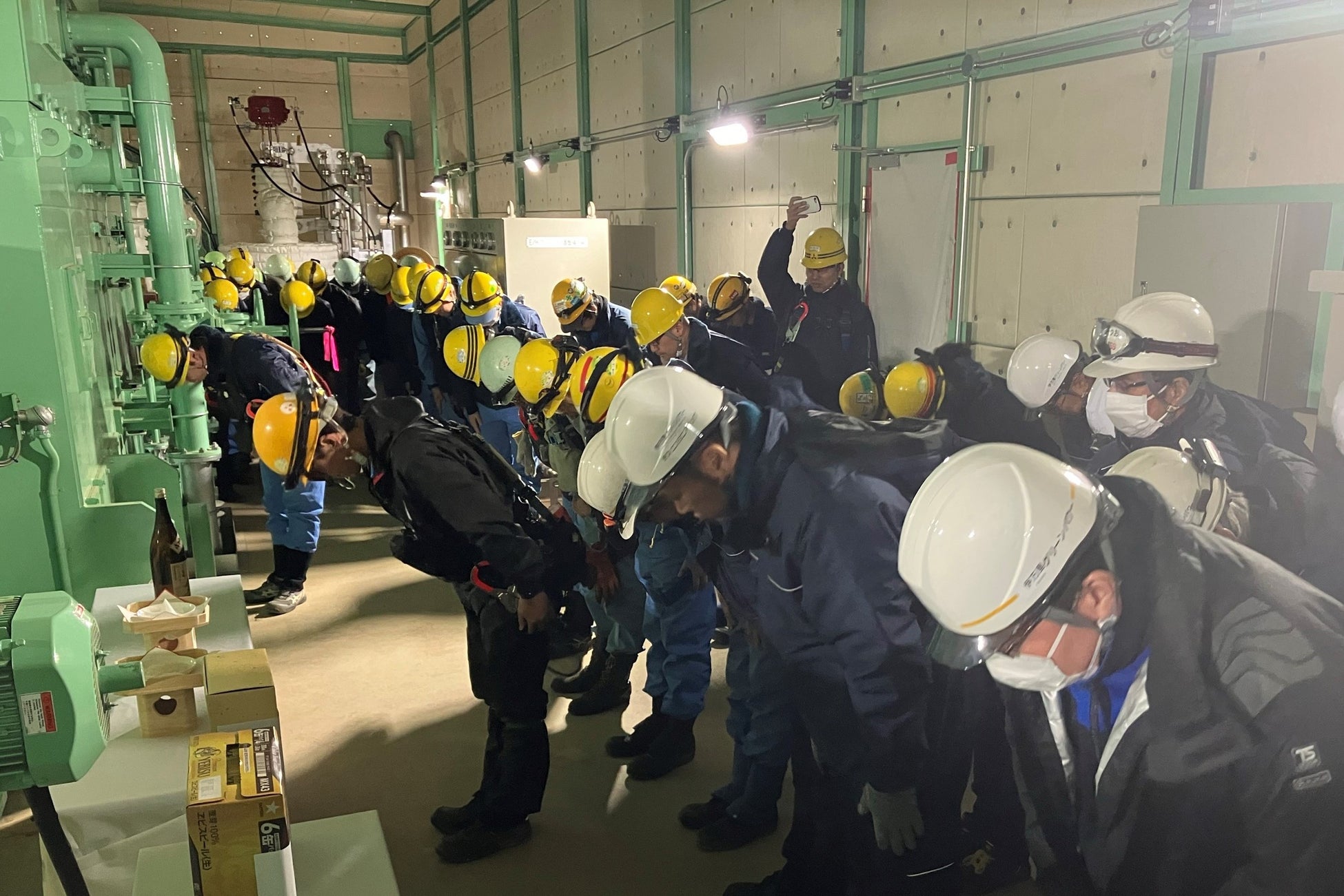 佐賀伊万里バイオマス発電所では、試運転による発電開始に先立ち、2025年2月10日(月)に発電所の主要な設備である蒸気タービン発電機に蒸気を供給する「タービン通気」を実施し、当社グループをはじめとする本発電所開発の関係者一同で安全祈願を執り行いました。その後、タービン通気に関する試運転を経て、本日2025年2月13日(木)に蒸気タービン発電機の稼働による発電開始に成功いたしました。この度、試運転による発電が開始したことで、本発電所の建設工事の大きな節目を迎えることができました。