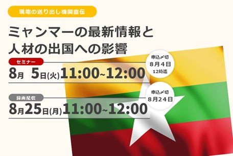 【現地最新情報】ミャンマー人材の日本入国の影響について 8/5(火)セミナー開催