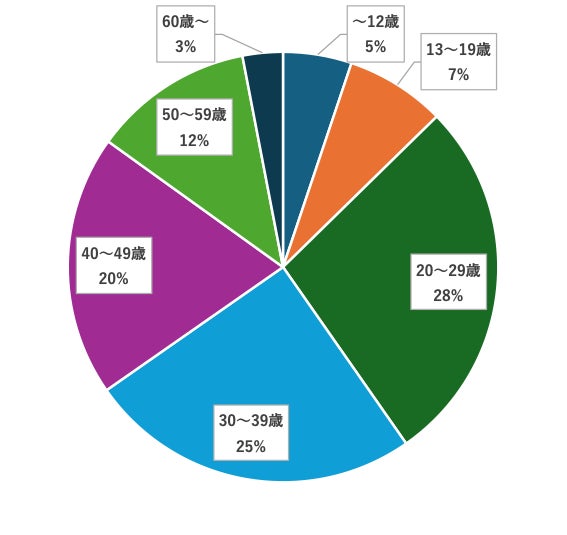 特筆すべき点として、「〜12歳」と「60歳〜」の参加が約1割程度あり、広い世代へのリーチができていたことが伺えます。