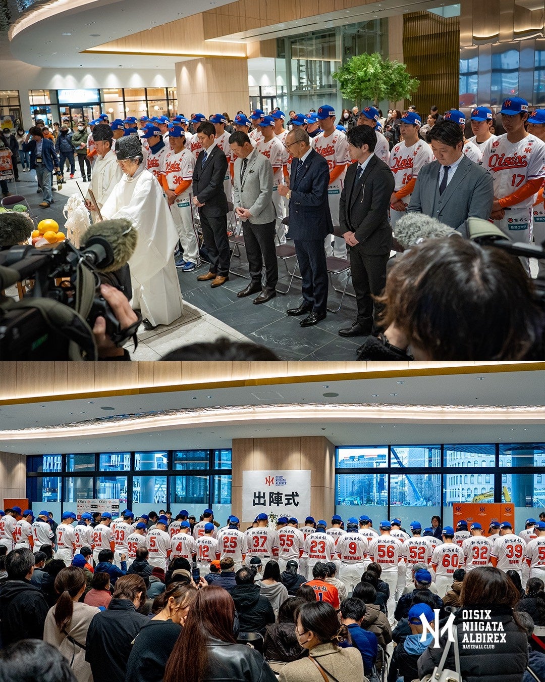 毎年HARD OFF ECOスタジアム新潟にて一般には非公開で行っていた必勝祈願を、今年はCoCoLo新潟 吹き抜け広場「ガタリウム」で初開催。全選手、監督、コーチ、CBO、チームスタッフが参加しました。