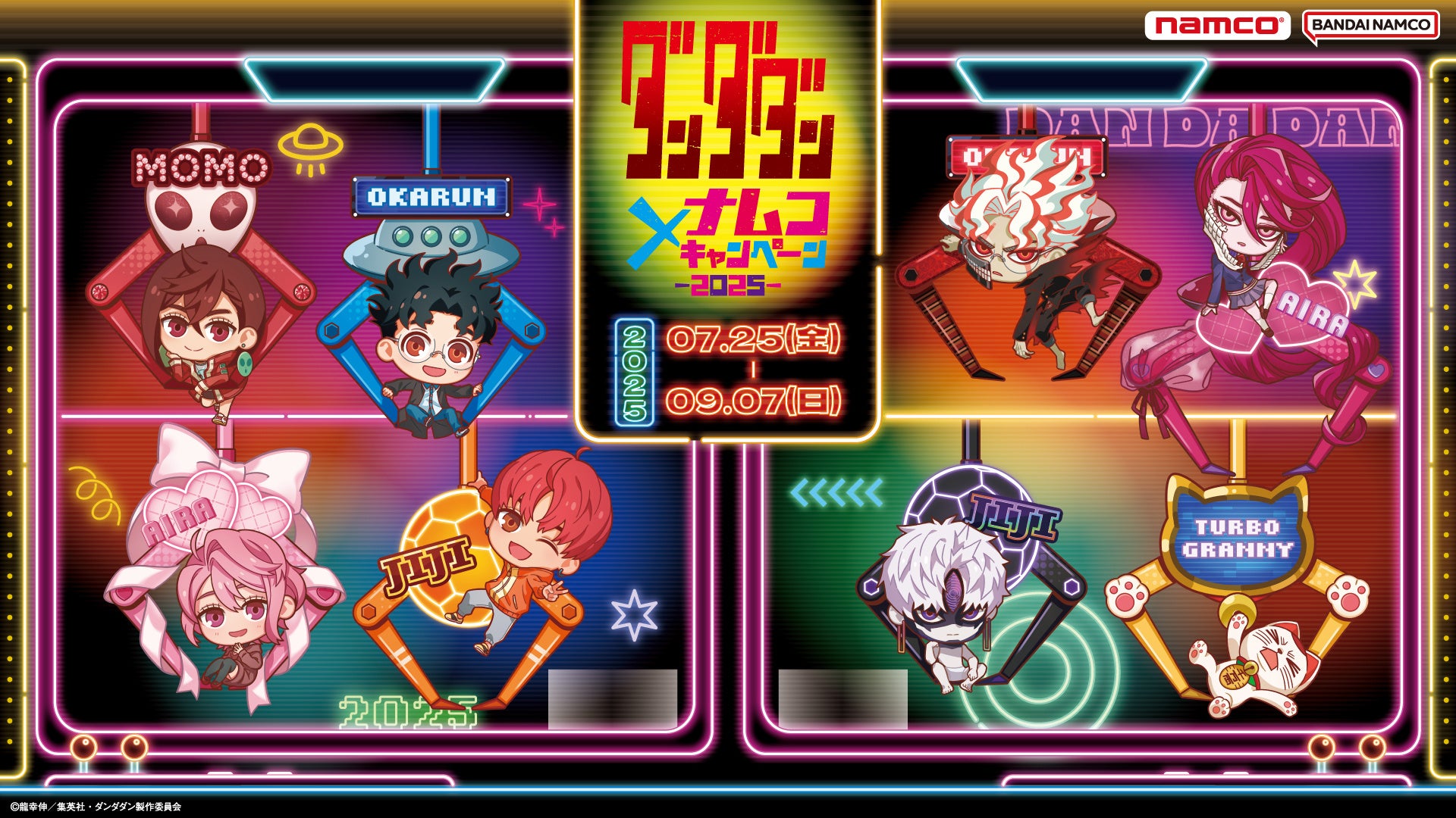 株式会社バンダイナムコエクスペリエンスは、TVアニメ『ダンダダン』第2期の放送を記念したキャンペーンを2025年7月25日(金)~2025年9月7日(日)まで全国のアミューズメント施設「ナムコ」および「ナムコオンラインクレーン」(以下ナムクレ)で開催します。