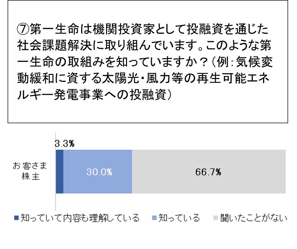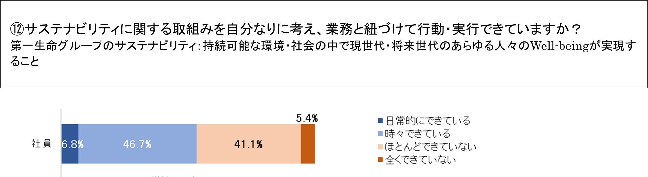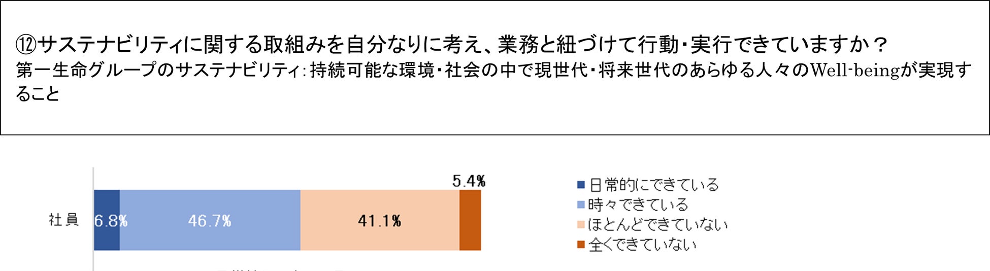 第一生命ホールディングス株式会社(代表取締役社長 グループCEO:菊田 徹也、以下「当社」)は、第一生命保険株式会社(以下「第一生命保険」)と協働で実施したサステナビリティに関するアンケート調査の結果をお知らせします。本調査は、第一生命保険を中心とした当社グループのお客さま、株主の皆さま、ならびに当社グループ各社社員(※1)を対象として実施し、合計60,091名にご回答いただきました。