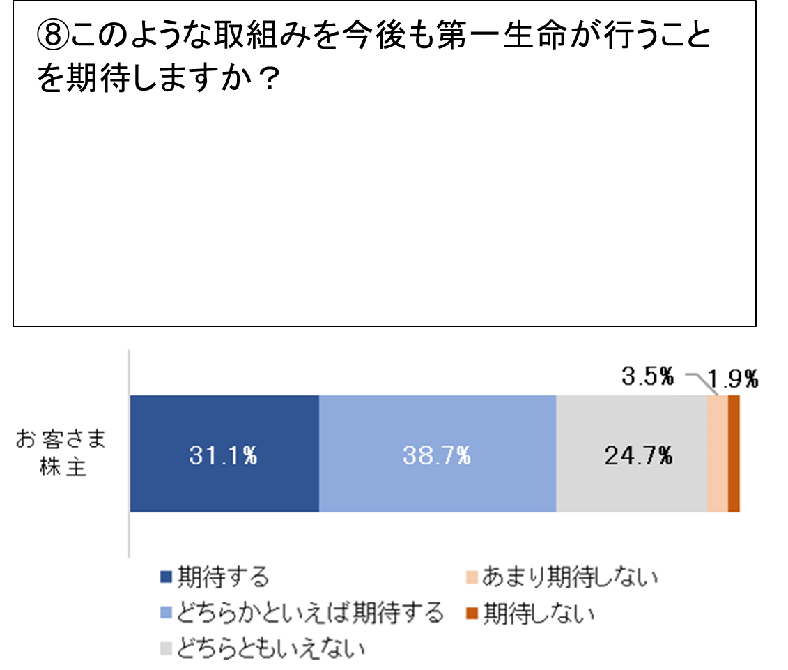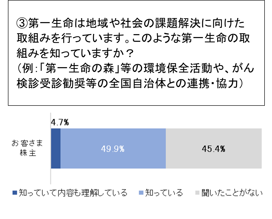 ・第一生命保険の地域・社会の課題解決への取組みに関しては、半数以上が認知しており、今後の同取組みの実施について8割以上が肯定的な回答を選択した。