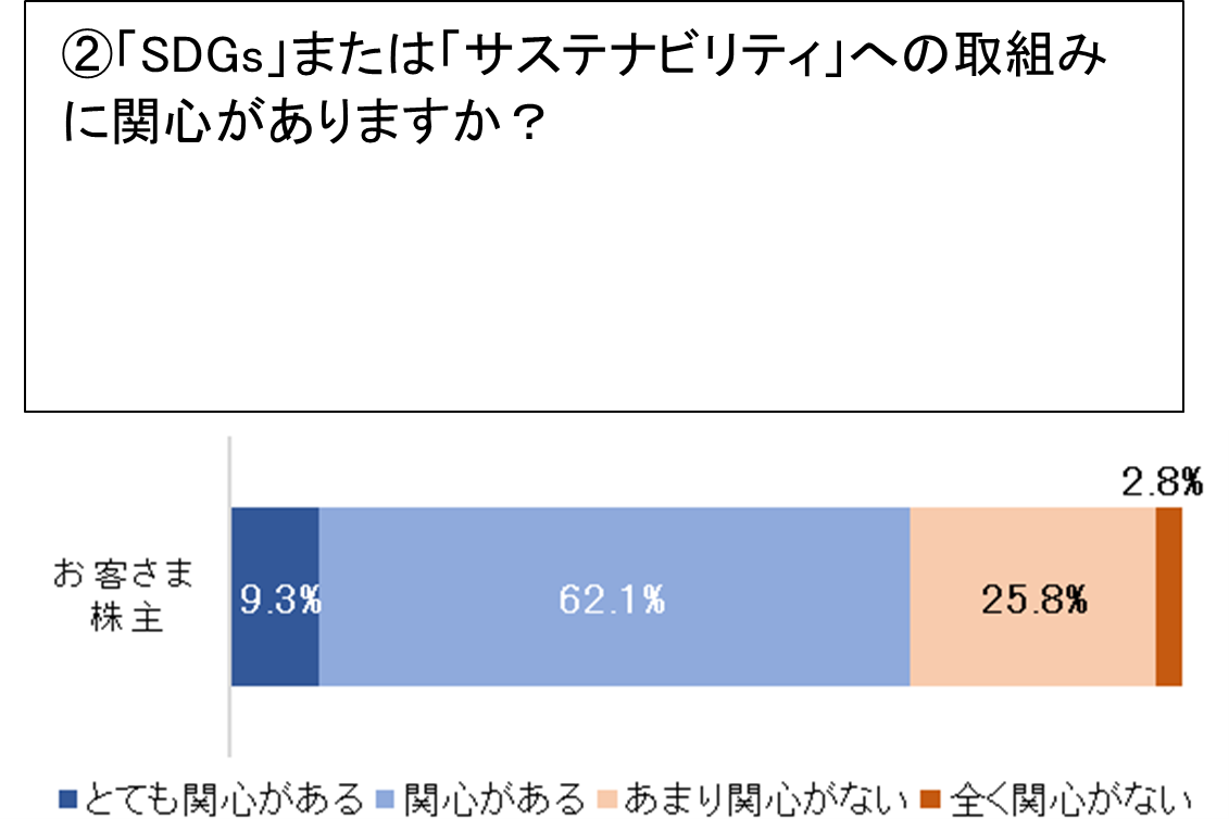 ・サステナビリティに関するアンケート調査を継続的に実施することで、様々なステークホルダーの認識を把握し、今後の取組みに反映する。