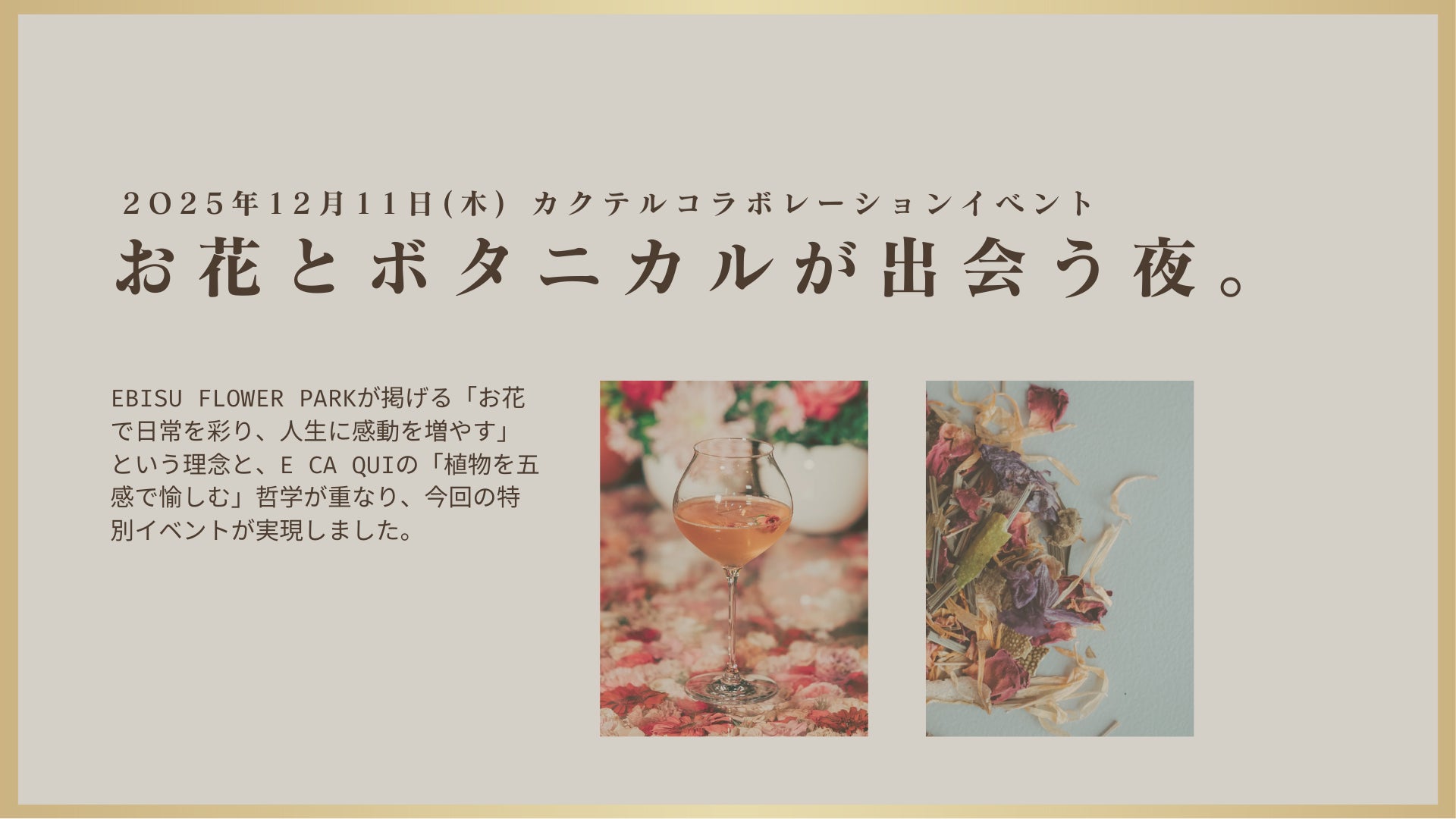 【E CA QUI × EBISU FLOWER PARK 恵比寿BAR本店】お花とボタニカルが出会う夜。カクテルコラボレーションイベント開催|2025年12月11日(木)|