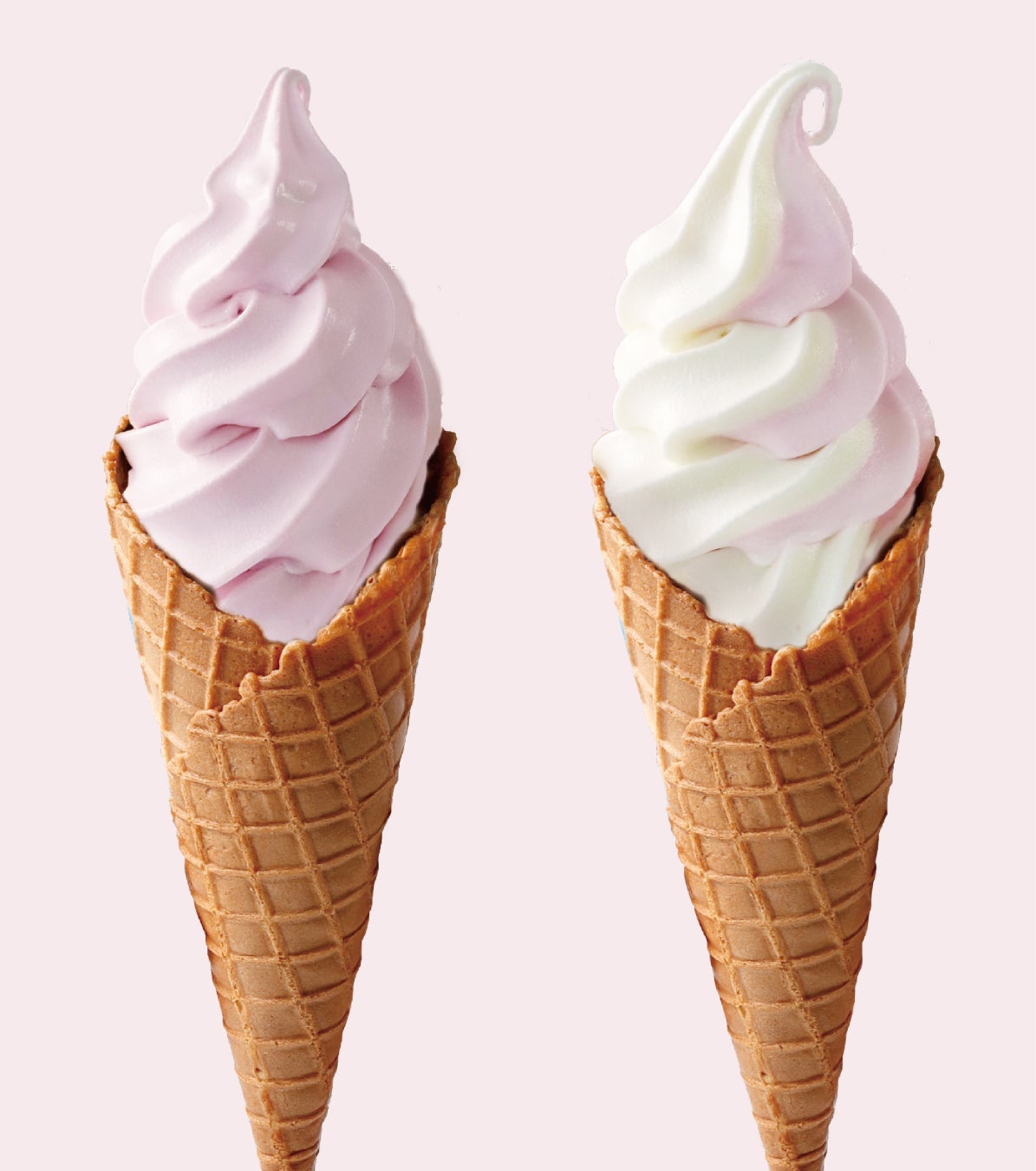 ①あさぎり牛乳ソフトクリーム〈いちご〉/〈いちご&ミルク〉
