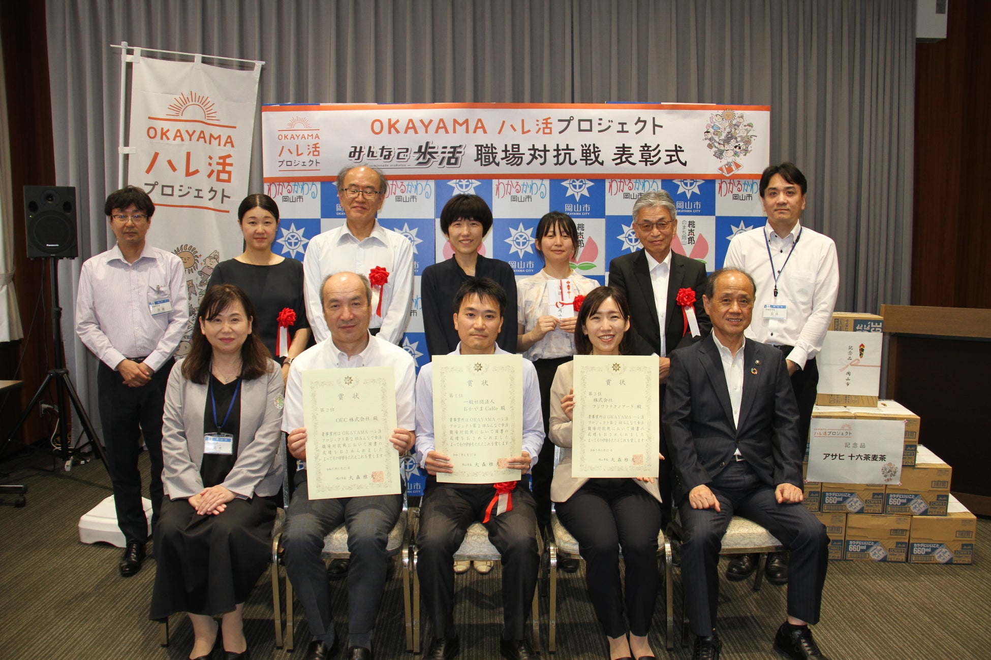 岡山市の健康ポイント事業「OKAYAMAハレ活プロジェクト」のウォーキングイベント「みんなで歩活(あるかつ)」職場対抗戦の上位企業を表彰しました。