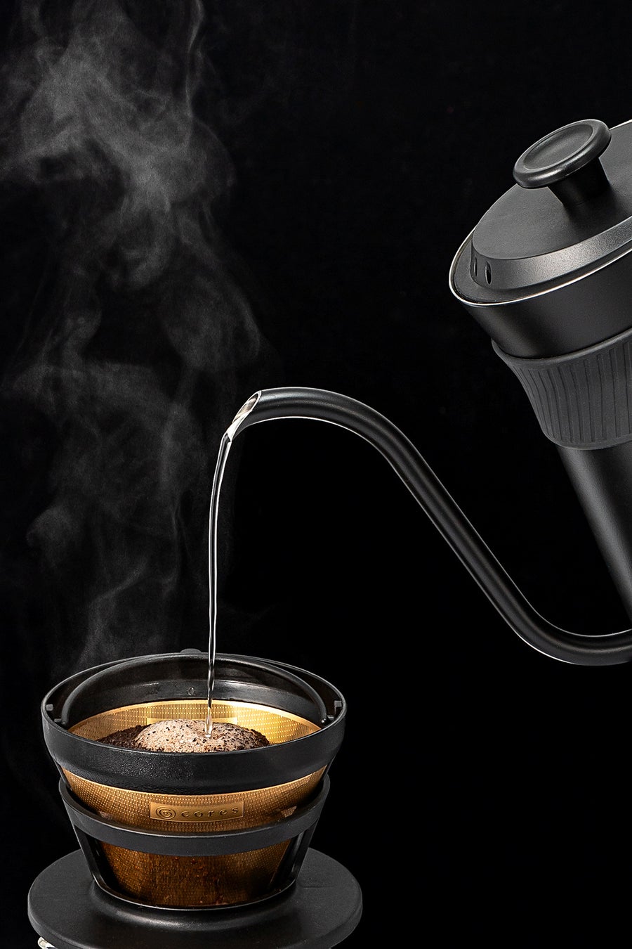 コーヒードリップでは湯量やスピードのコントロールがしやすく、湯切れもよいため、狙ったポイントを外さず注ぐことができます。