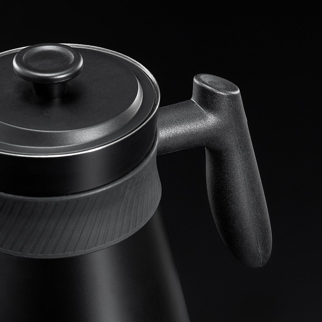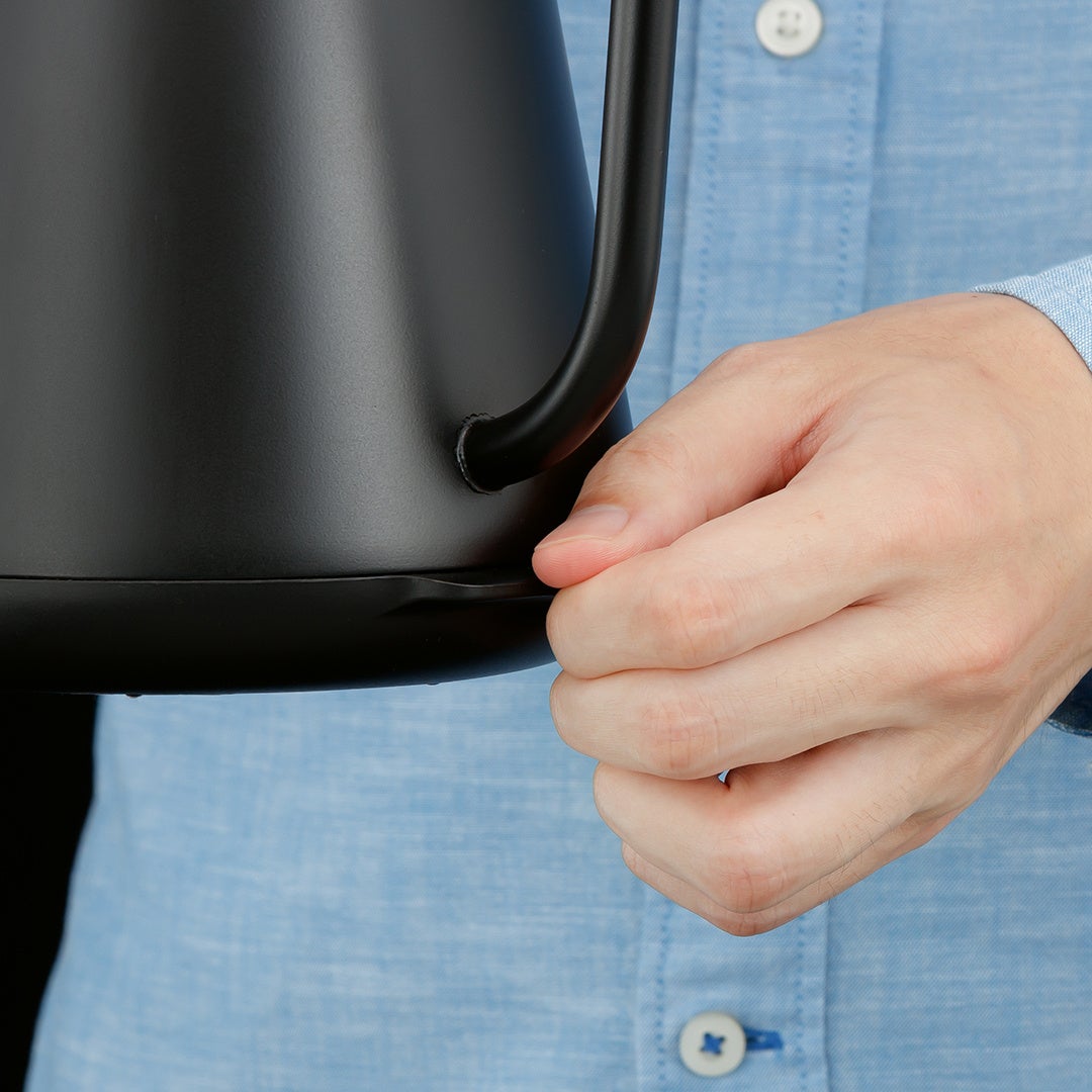 ハンドル上部には親指をひっかける窪みを設け、グリップ部分も手にしっくり馴染む形状。安定した注ぎを実現します。