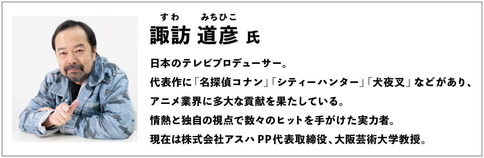 キャラクターのアドバイスや監修を担当したのは、人気アニメ名探偵コナンの元エグゼクティブプロデューサー諏訪道彦氏。