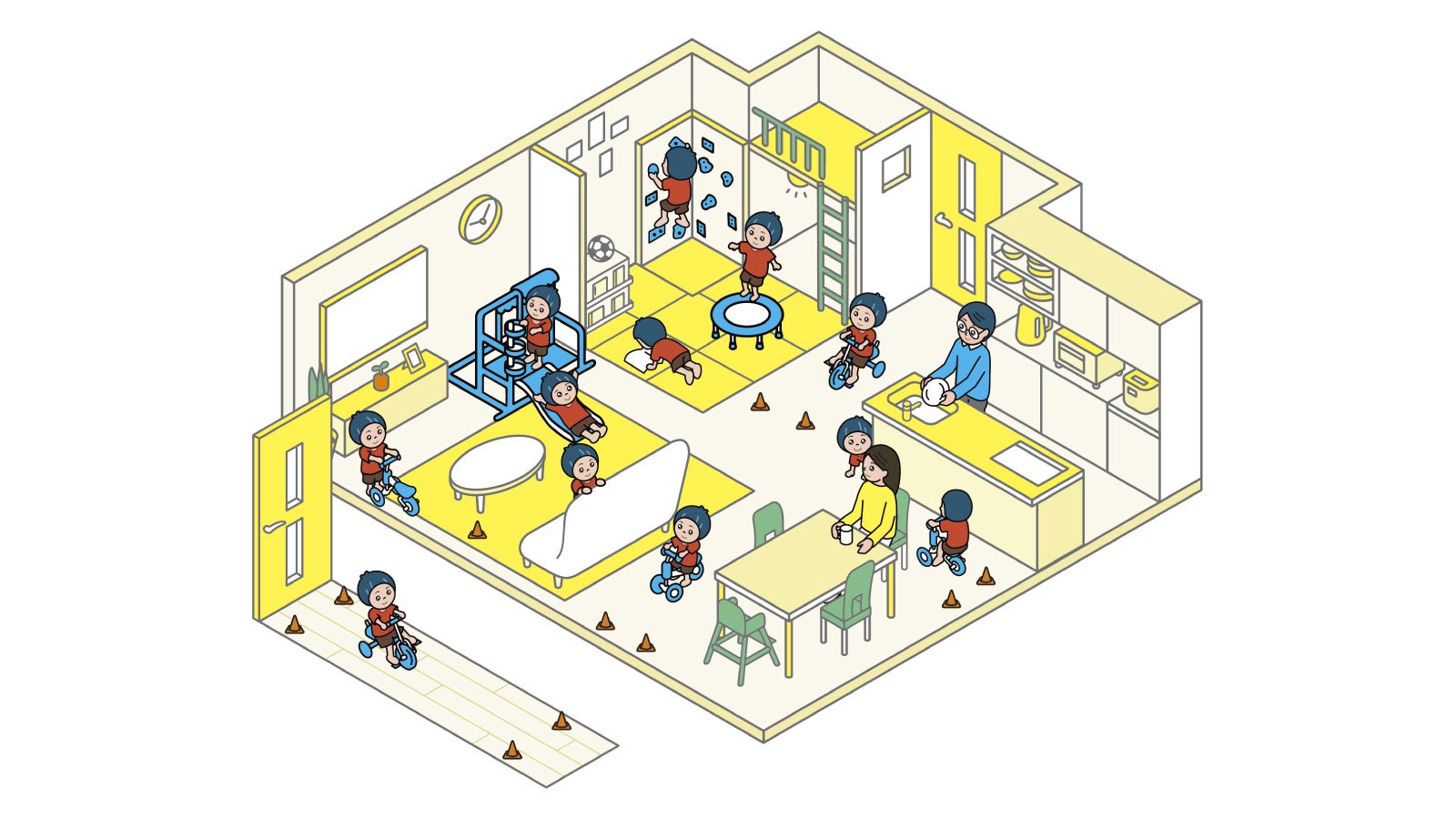 「おうちでプレイパーク36」のブースは4つのエリアで構成され、それぞれ三輪車、トランポリン、ジャングルジム、バランスあそびを楽しむことができます。各エリアには未就学児でもチャレンジできるミッションが設定されており、エリアごとにチャレンジできた印のシールを集めて、全エリアクリアすると特別なプレゼントがもらえます!ミッションクリアを目指すなかで「こんなあそび方もできるね!」「こうやってあそぶと楽しいね!」と新たな発見をしていただけるような親子で楽しめるシールラリーとなっています。