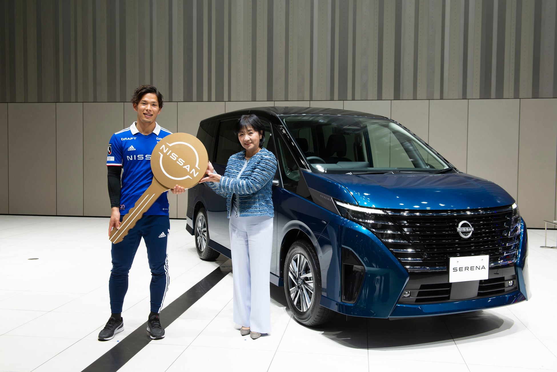 Jリーグアウォーズ2022で最優秀選手賞に輝いた横浜F・マリノスの岩田智輝選手へ日産セレナ e-POWER LUXIONをサプライズプレゼント!