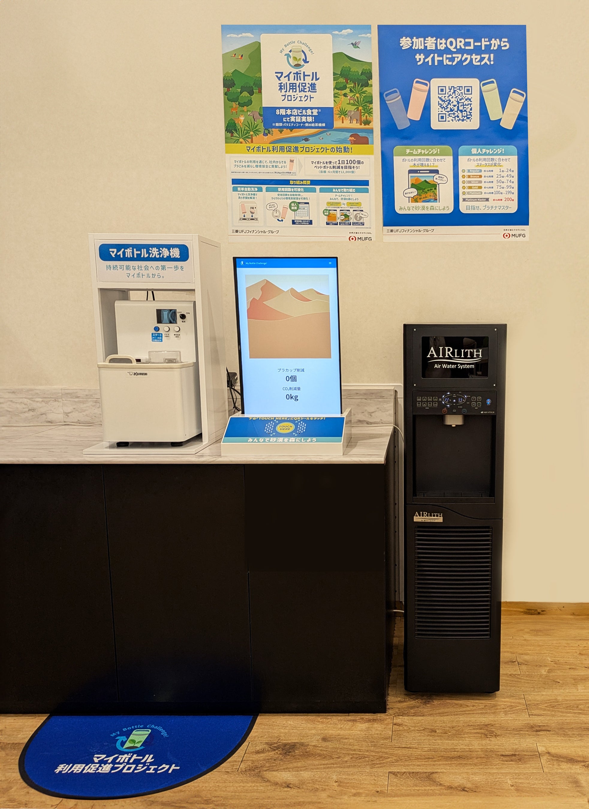 株式会社三菱 UFJ フィナンシャル・グループ(代表執行役社長 亀澤宏規、以下 MUFG)の連結子会社3社(三菱UFJ銀行、三菱UFJ信託銀行、三菱UFJモルガン・スタンレー証券)は、「社会課題の解決」に向けた取り組みの一環として、プラスチックカップやペットボトル利用削減によるCO2排出量削減及び社員啓発を目的として、株式会社サトー(代表取締役 社長執行役員 グループCEO 小沼 宏行、以下サトー)と象印マホービン株式会社(代表取締役 社長執行役員 市川典男、以下象印)が提供する「マイボトル利用促進プログラム(以下、「プログラム」)」を導入します。