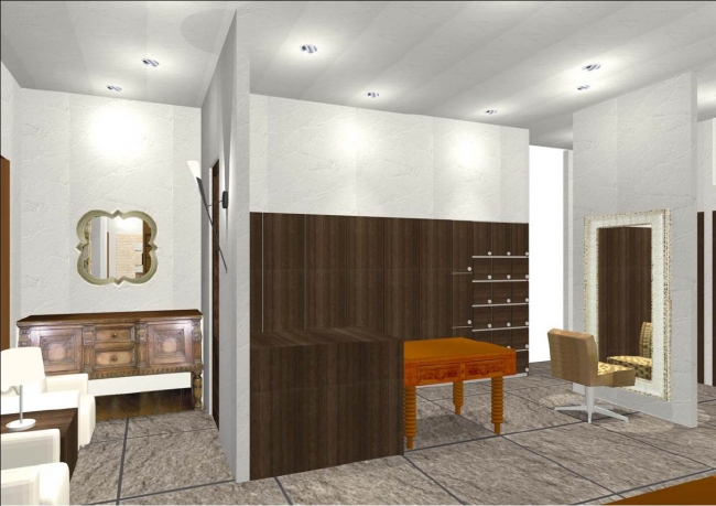 入口はオープンで入りやすく、レセプション兼ショップアドバイザーがお客様をお迎えします。外装には壁面緑化をあしらい、レセプションスペースはイギリスから輸入したアンティーク家具を随所に配した落ち着いた心地よい空間となっています。またダウンライトでリラックスできるシャンプースペースのほか、ヘッドスパ用の個室をご用意し、より安らぎを感じていただけるサービスをご提供します。