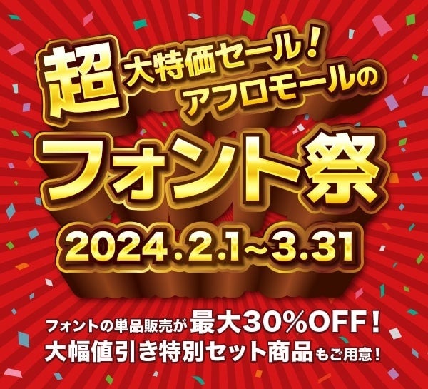 フォントの超大特価セール「アフロモールのフォント祭」、大幅値引きの特別セット商品もご用意!